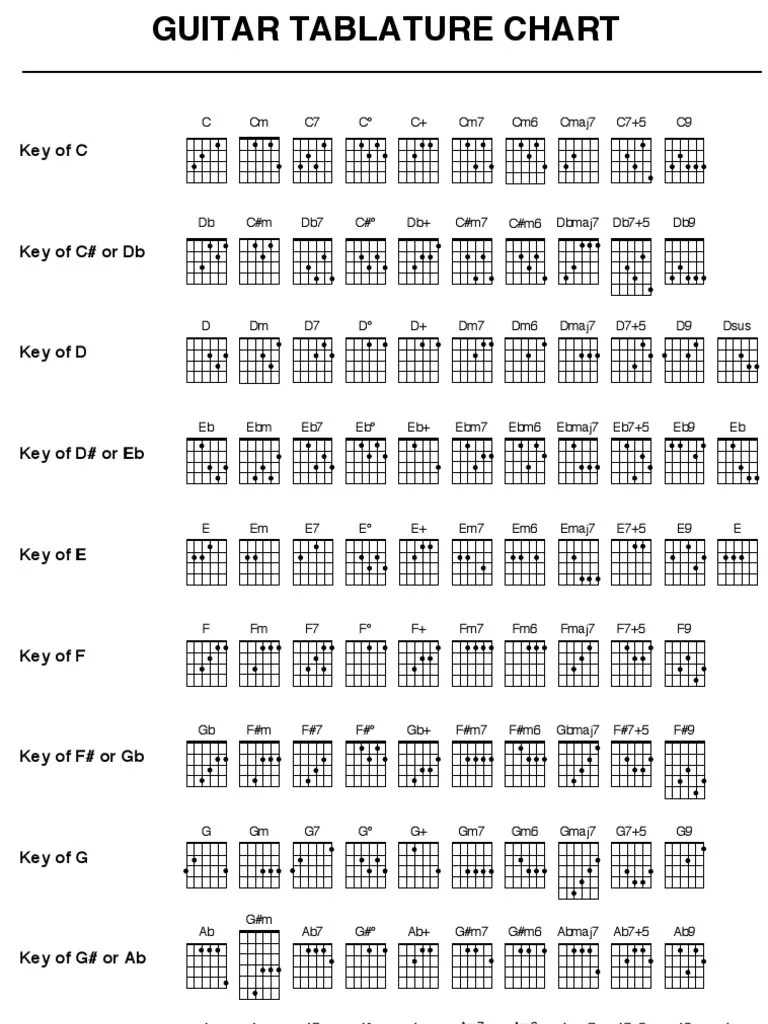 Guitar Chord diagrams.chords organized by key! GREAT for easing beginners into theory from