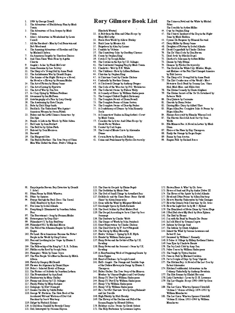 Web Here Is A Printable Pdf Of The Complete List Of Books That Rory Gilmore Read Throughout The Show.