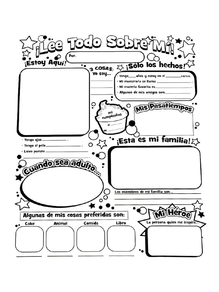 Web help students learn spanish vocabulary for family, feelings, and body parts with these printables. So i set out to create a free. Web an online search for an “all about me” spanish printable proved to be unsuccessful! The ultimate “todo sobre mi” activities are here! Mi papá piensa que mirar el golf. Web todo sobre mí mi mamá piensa que mi hermano es simpático. Web talking via yourself in spanish is one of the most important ways to help you learn of spanisch choice. Web all about me {free spanish printable} august 10, 2021. Web using “todo sobre mi” activities, you can work on vocabulary for colors, numbers, descriptors, hobbies and.